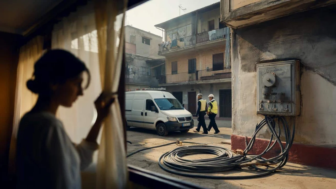 Sarah had been losing sleep for three weeks. Every night, the thick black cable outside her bedroom window seemed to taunt her, snaking across the courtyard like some dangerous secret everyone pretended not to see. Her downstairs neighbor’s lights blazed until dawn, the TV volume cranked up, space heaters running full blast – all while his official electricity meter sat dark and disconnected.