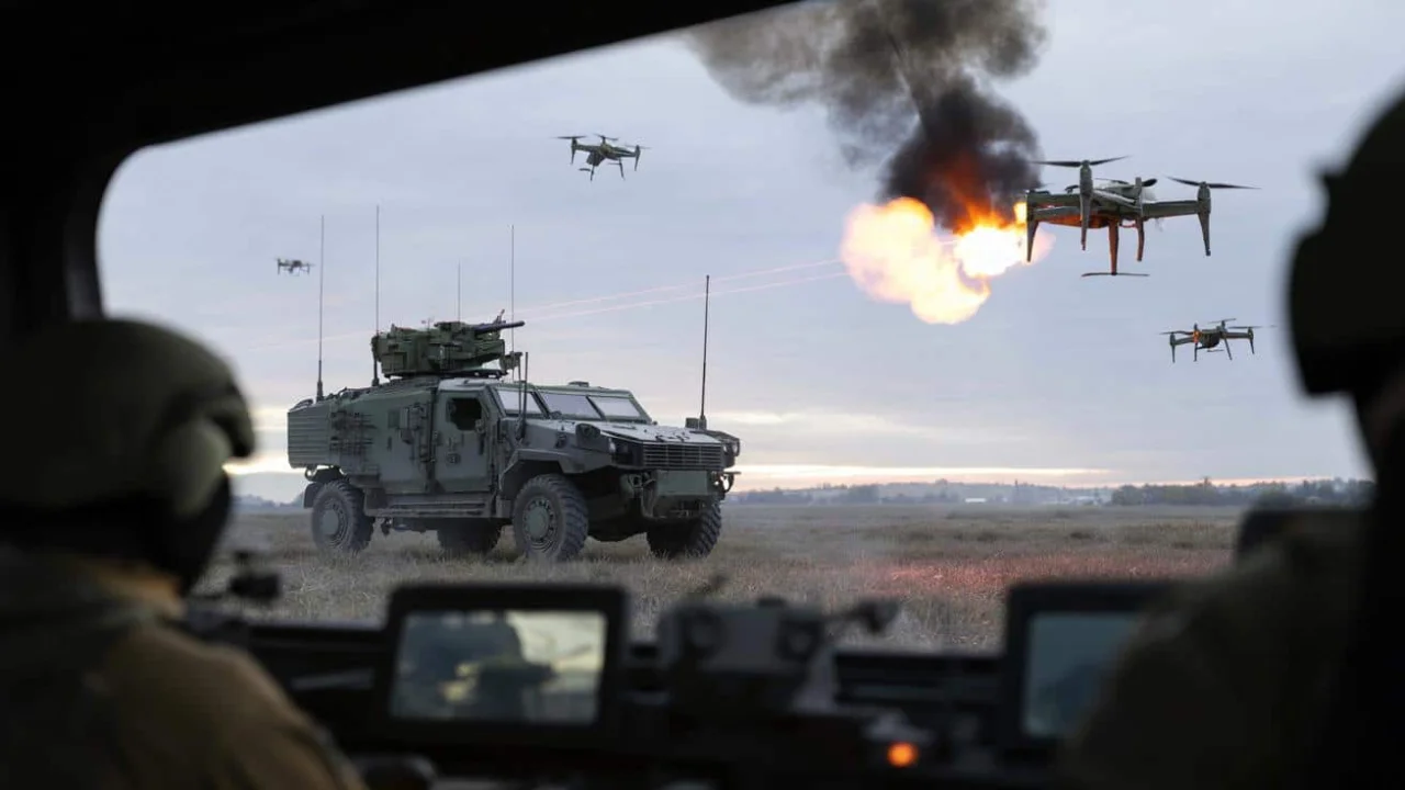 The beauty of this laser weapon lies in its simplicity. While traditional air defense systems require soldiers to pop hatches, expose themselves, and manually load missiles, this system operates from the safety of the vehicle’s interior. The crew can track, target, and eliminate threats while remaining completely protected.